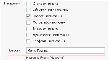 Группа » Редактировать информацию » Новости включены